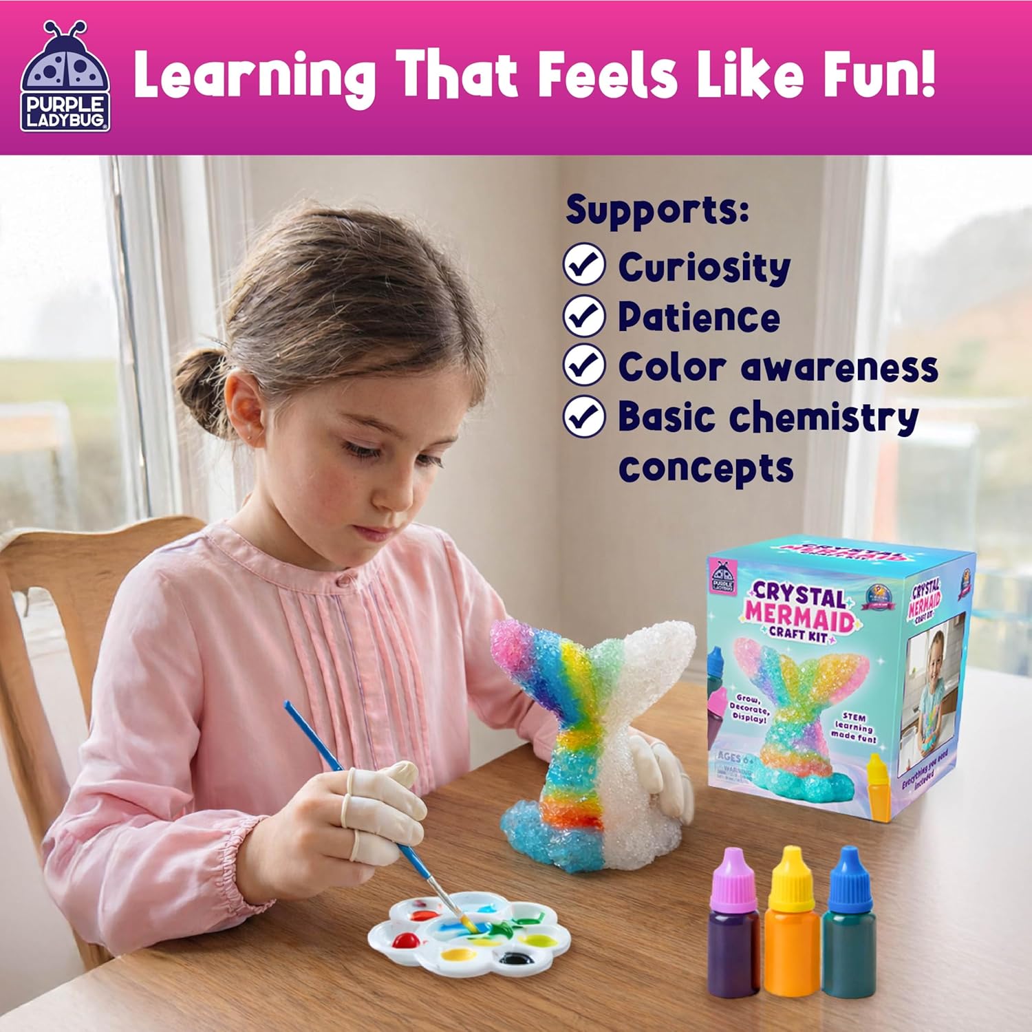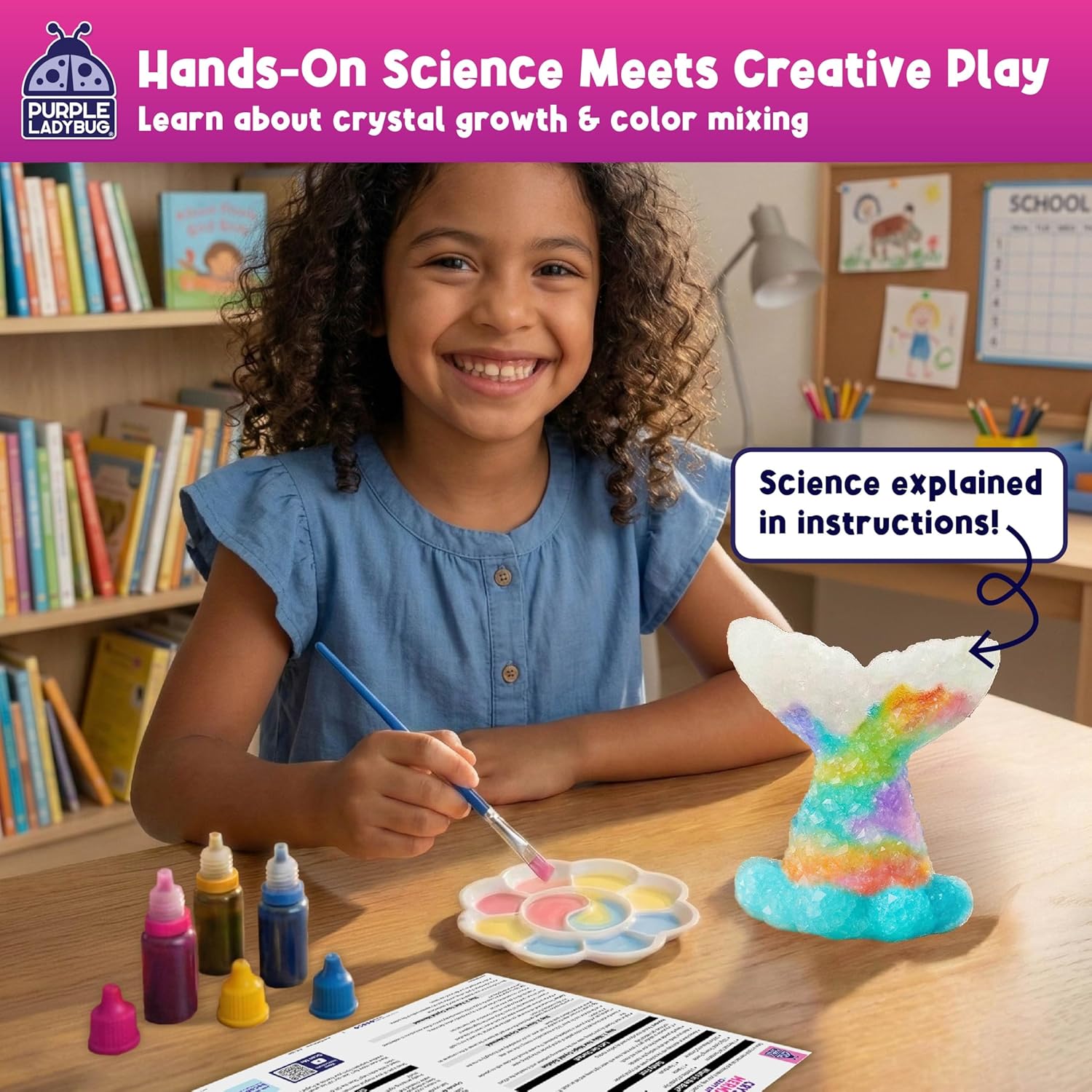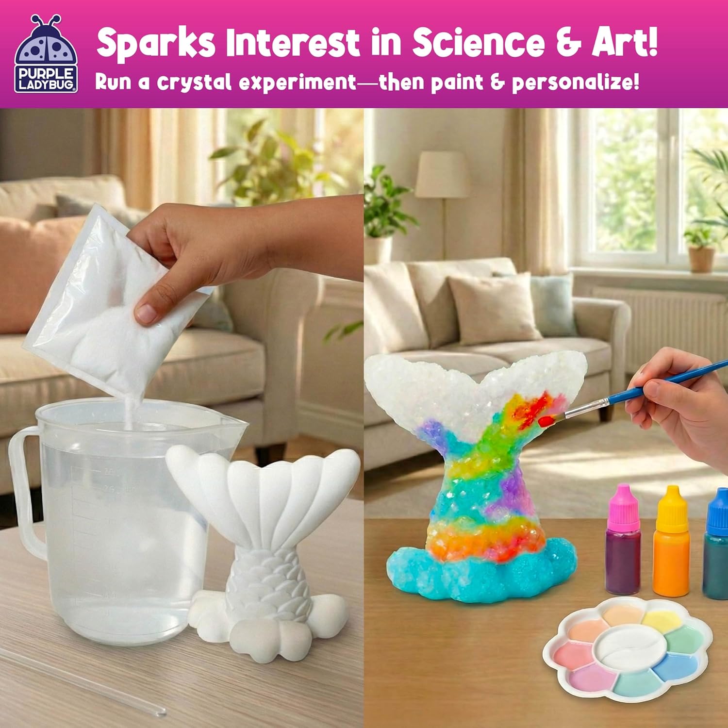 - GROW YOUR OWN SPARKLING MERMAID TAIL– A STEM CRAFT! Science and creativity mixed into one kit. Your child will grow your own crystals on a mermaid tail and then decorate it their way. Part science, part art, 100% fun! It's a screen-free activity that promotes learning and excitement.