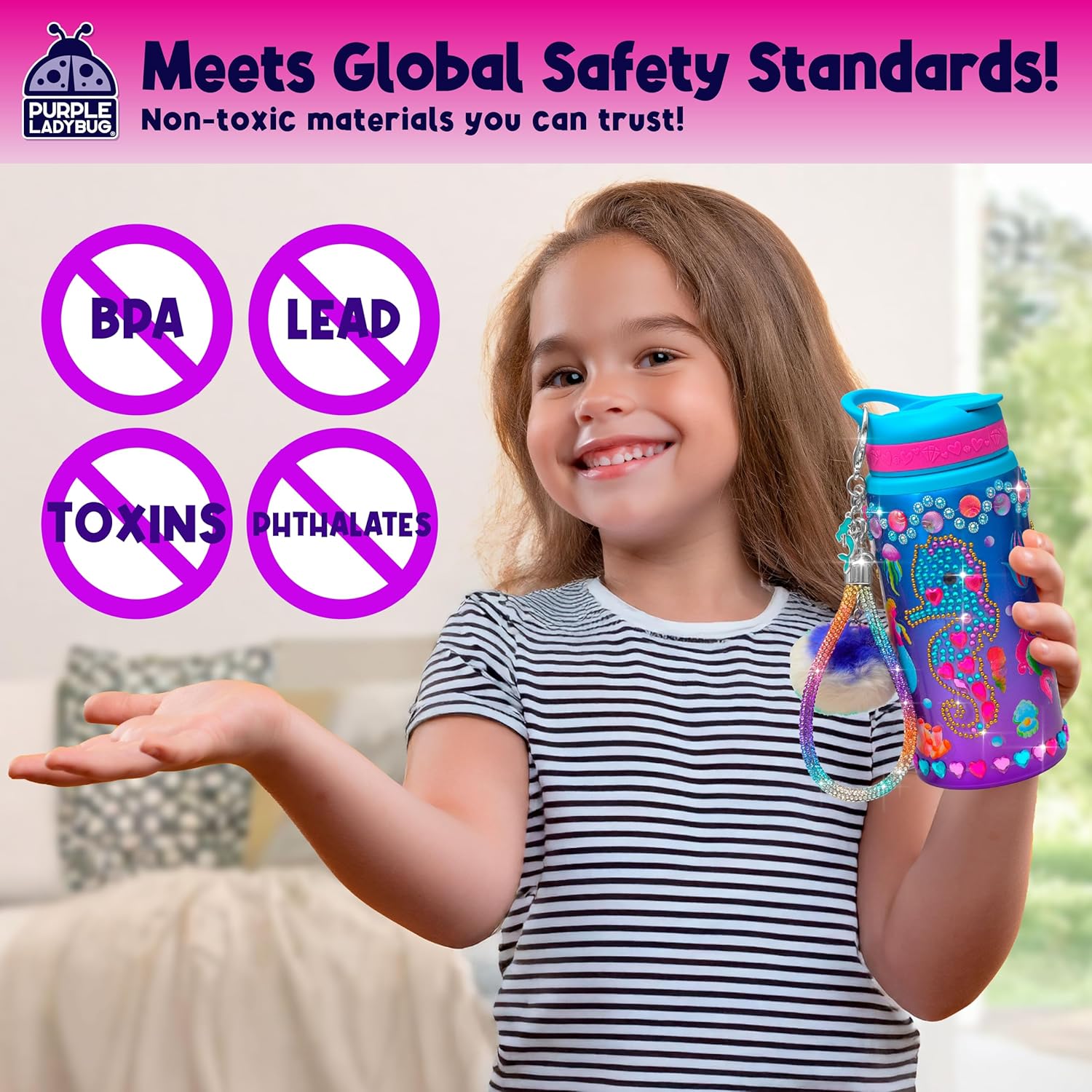 - Super fun crafts for girls! Kids decorate their own bottle with this teal kids water bottle craft kit! It comes with 7 sheets of rhinestone glitter gemstone stickers, giving kids hundreds of our sparkly glitter gem stickers to bling out their bottle! Plus we include a carabiner to hang the bottle and a bonus paracord bracelet kit.